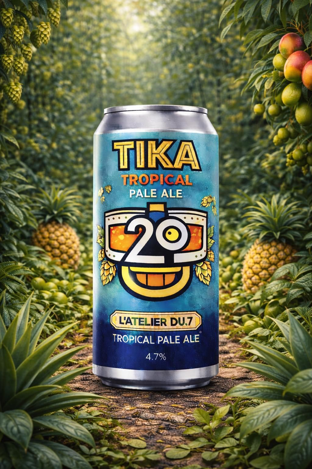 Découvrez la TIKA Tropical Pale Ale, une bière artisanale imaginée par L’ATELIER DU 7 et brassée avec la Microbrasserie Second Degré à Magny-le-Hongre, une collab dont nous sommes particulièrement fiers. 🍻